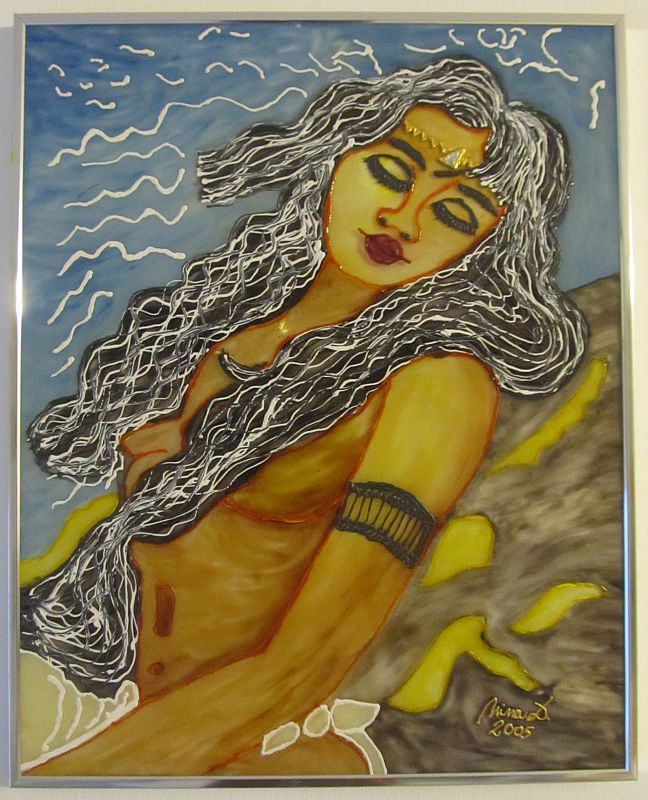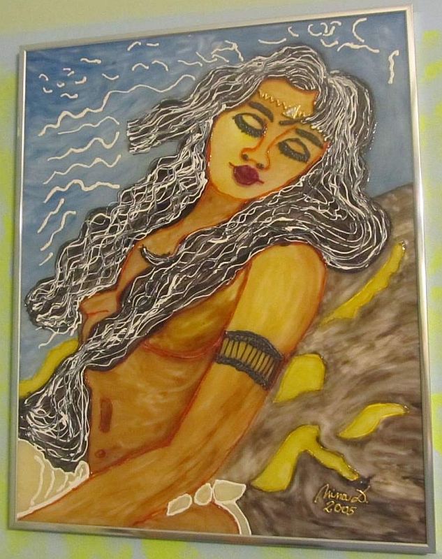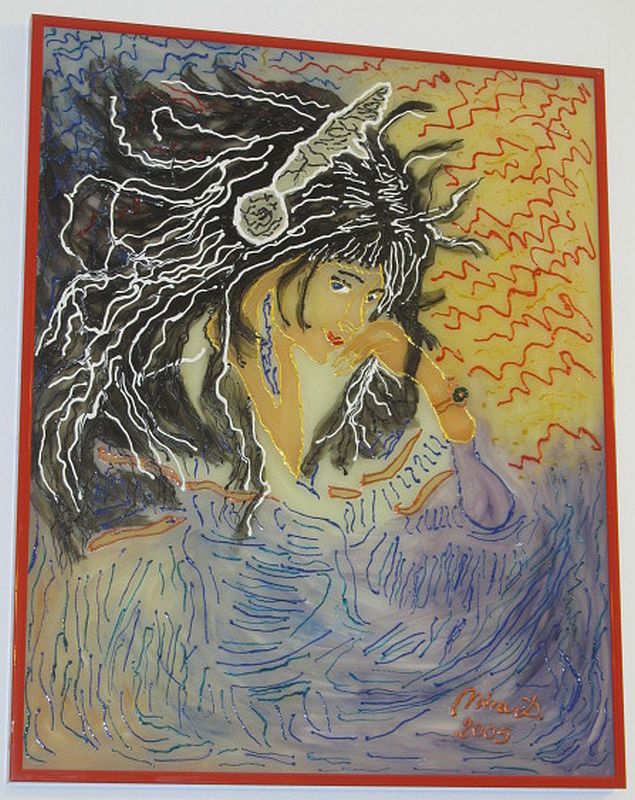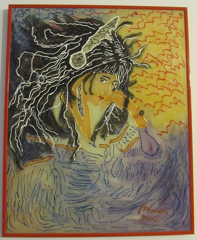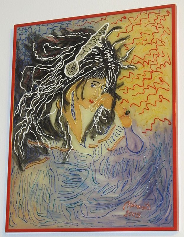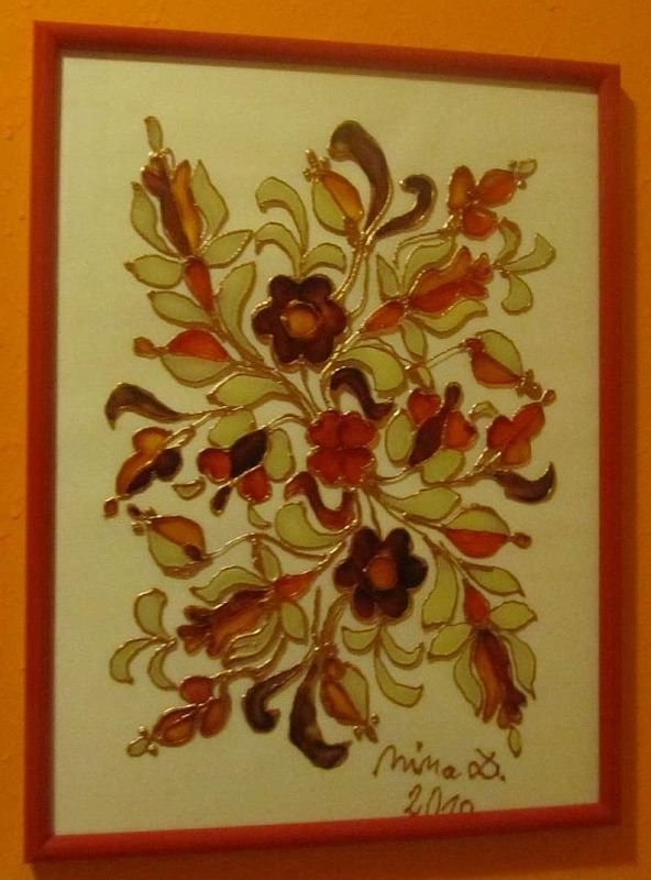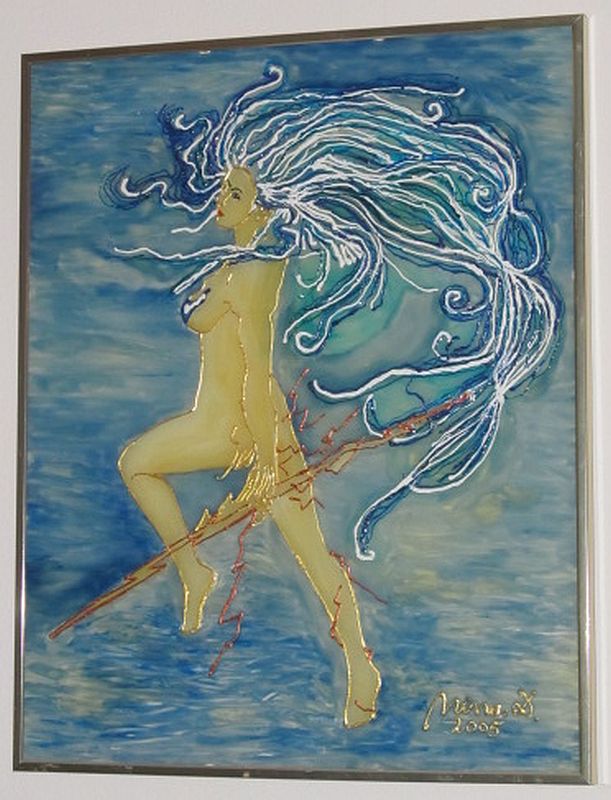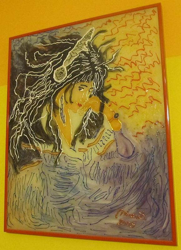 Paintings on glass made in special, self-discovered technique. They give us possibility to discover new angles, energies and observation views on each painting. Colors are soft and light is penetrating them both ways.